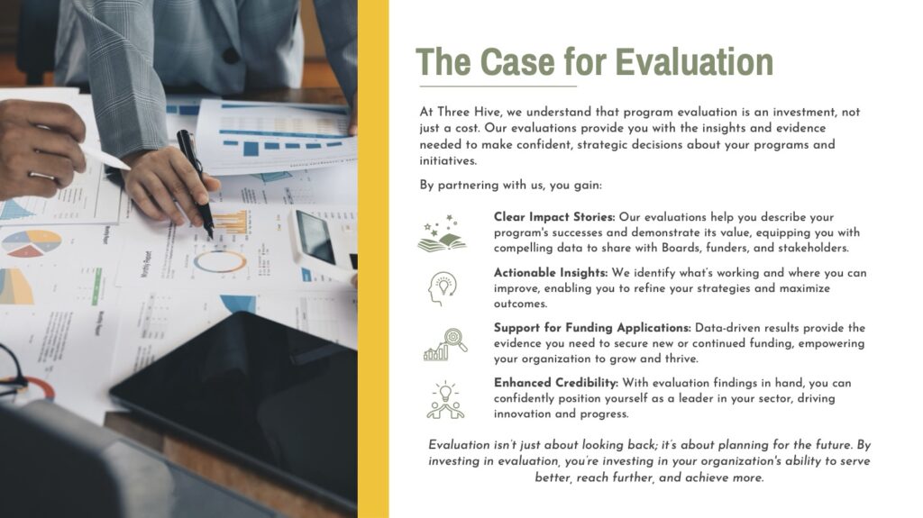 Three Hive Consulting is an Indigenous-owned, Alberta-based consulting firm specializing in evaluation. Since 2015, we have helped organizations that are doing good, to do better, through comprehensive evaluation practices, fostering a culture of excellence, adaptability, and community engagement.